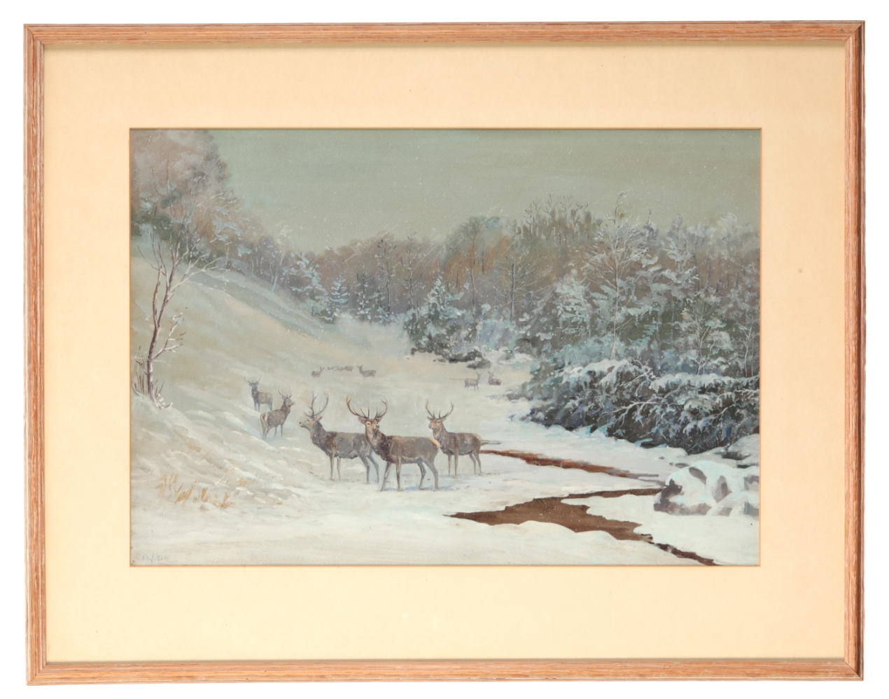 signed lower left, watercolour heightened with white, 34cm x 49cm