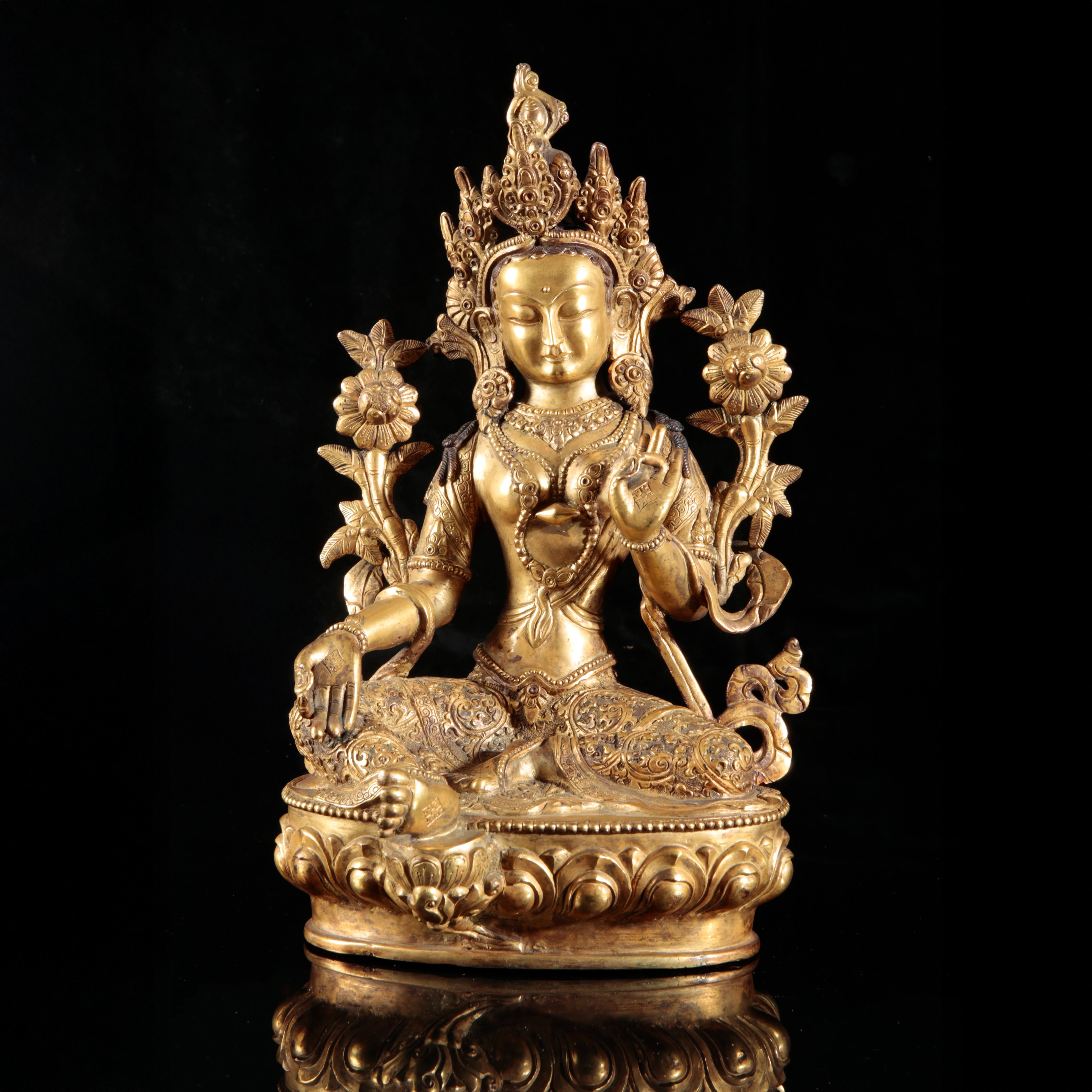 A TIBETAN GILT BRONZE FIGURE OF SEATED TARA