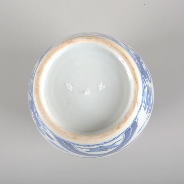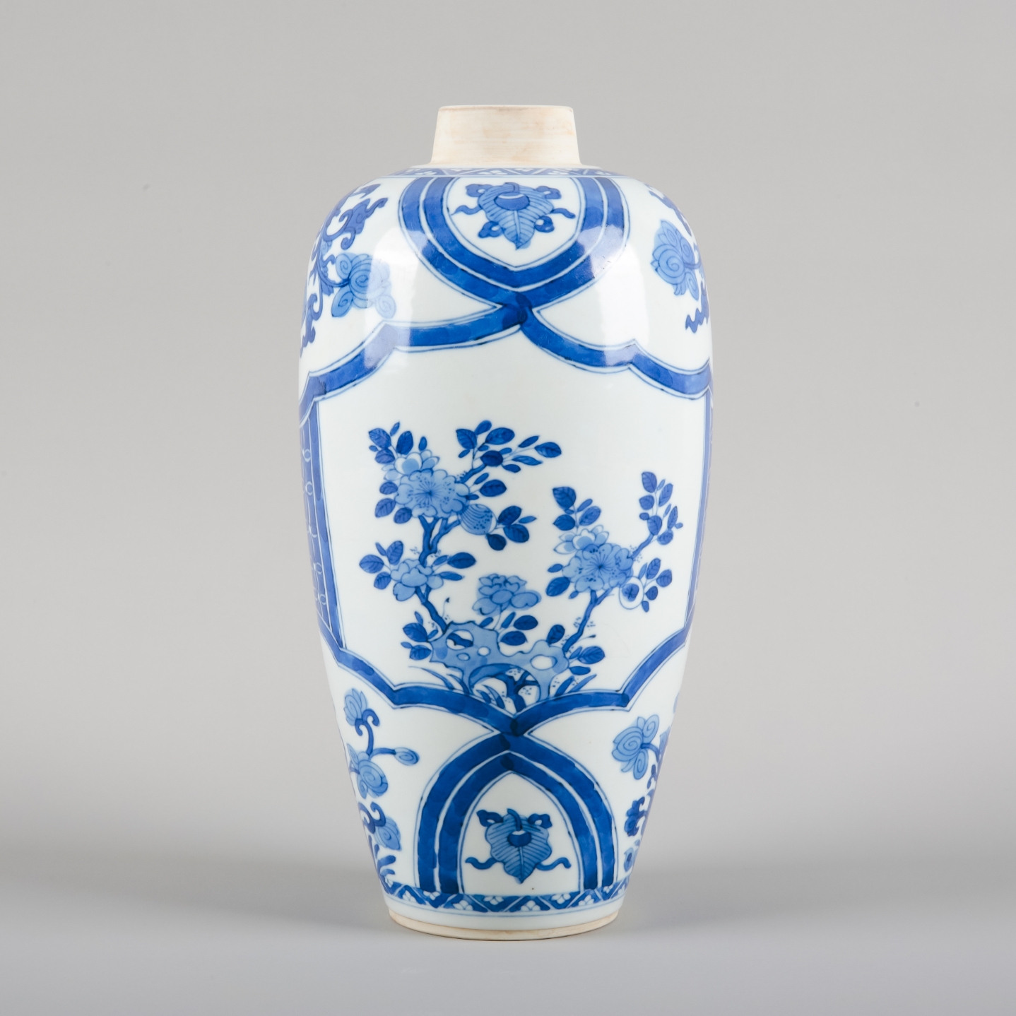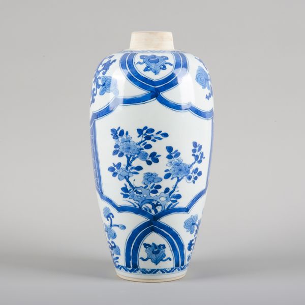 19th/20th century, decorated with a basket of flowers, blossoming prunus and stylised banding, 24cm high