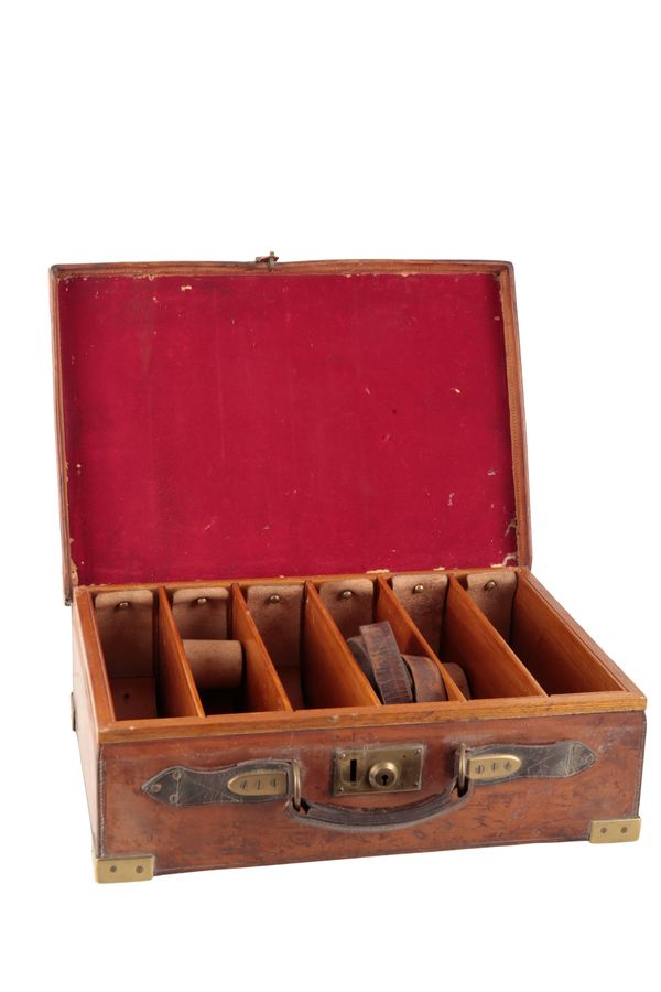 with brass corners, a red baize interior and leather carrying handle, for approx. 500 cartridges, 48cm wide x 35cm deep