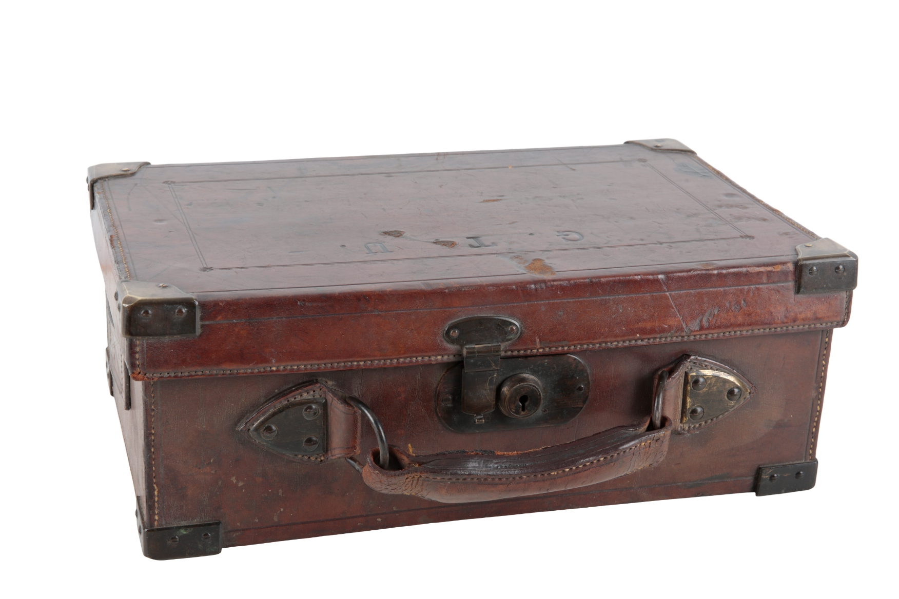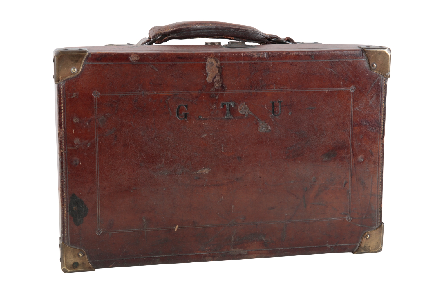 with brass corners, baize interior, leather staps and leather carrying handle, for approx. 400 cartridges, 40cm wide x 15cm deep