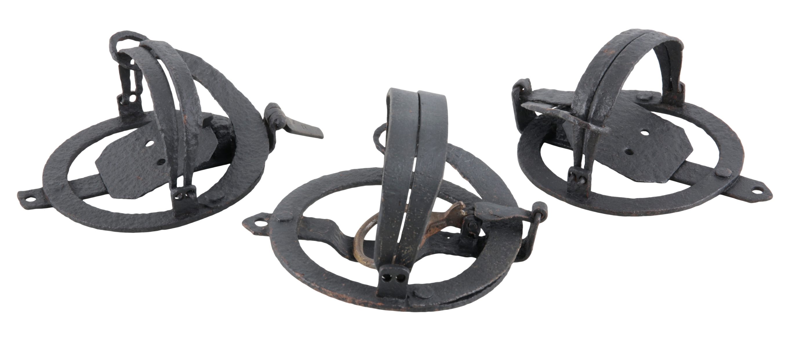 18cm long; together with two other wrought iron pole traps, one marked Gilpa (3) Provenance: A private Worcester sporting collection.