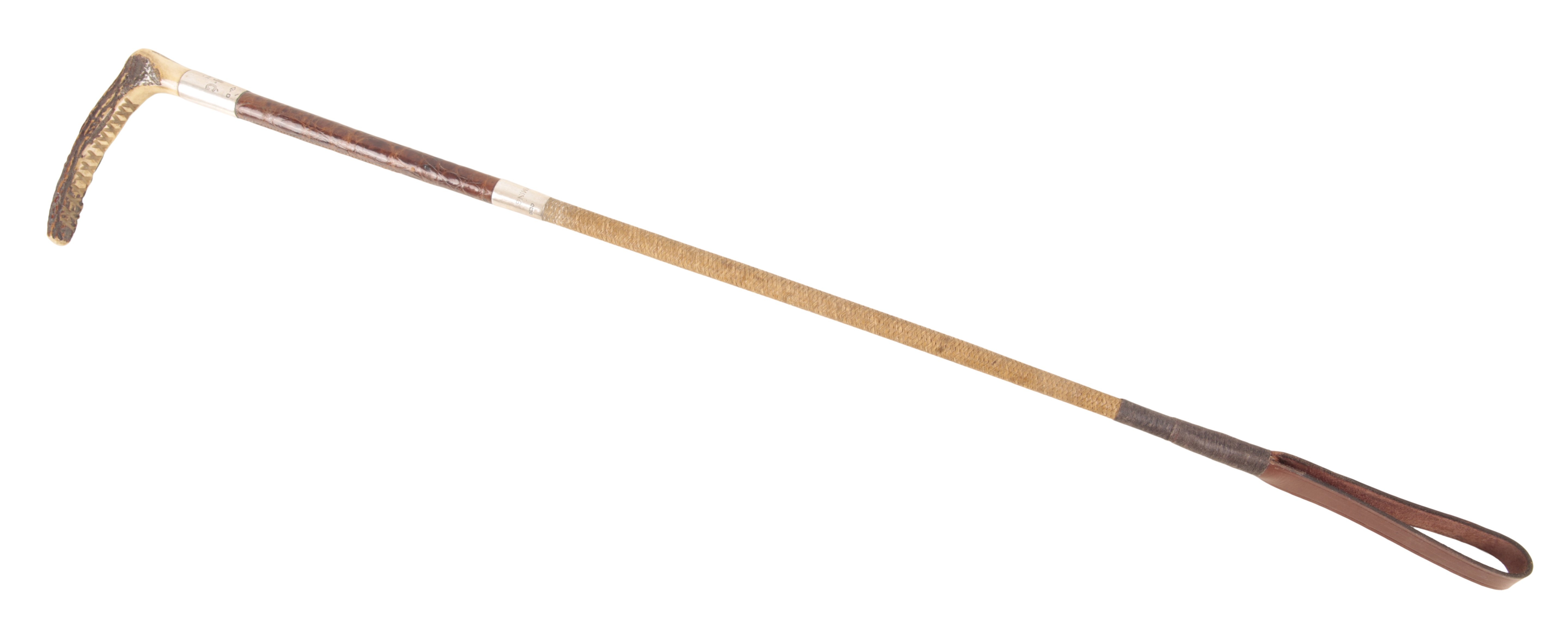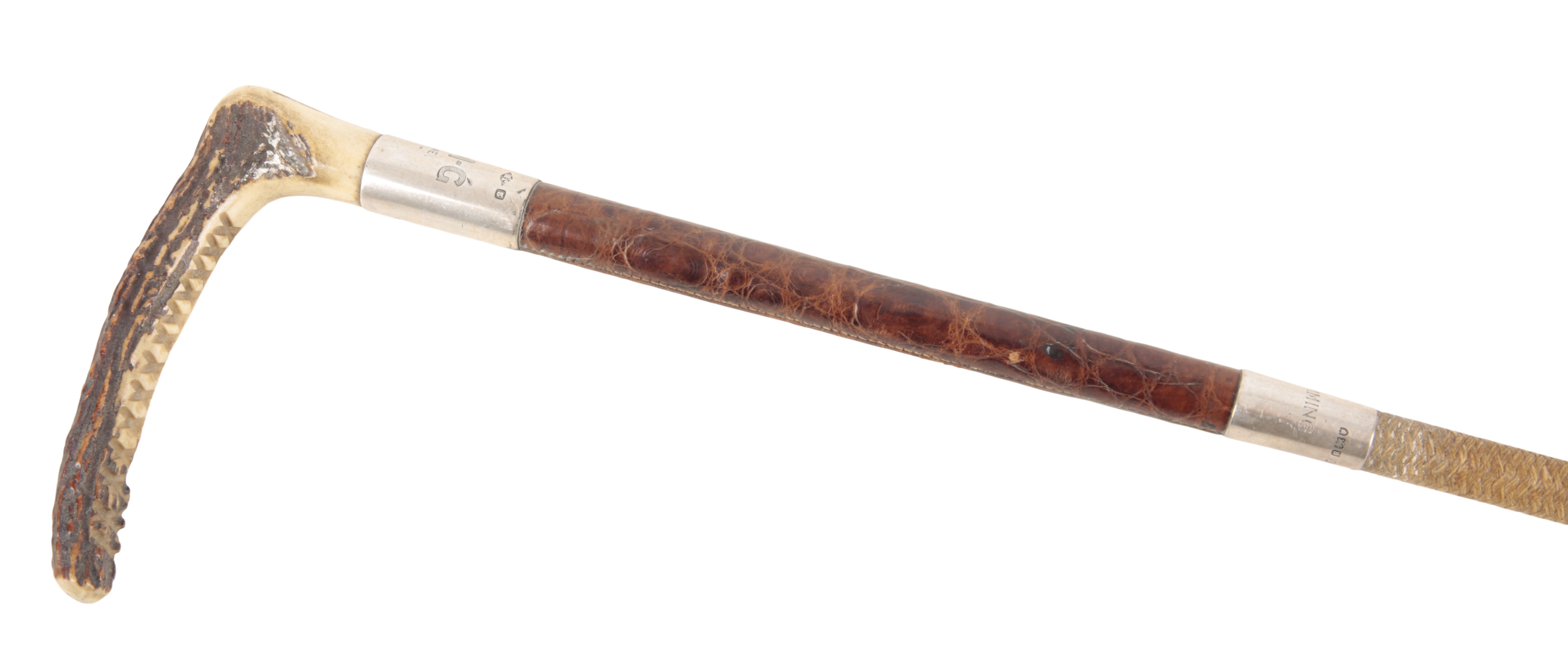 with double silver ferrules, crocodile grip and plated leather shaft, 60cm long