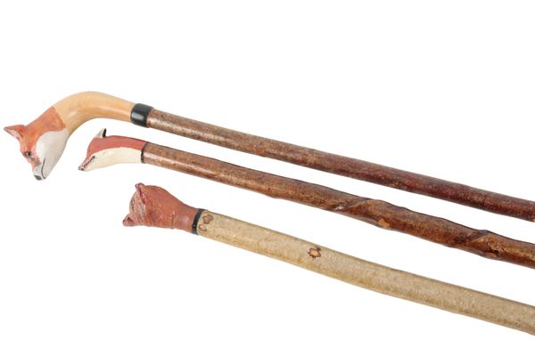 all with painted heads in naive style, the taller with glass eyes and erect ears, the largest 132cm high (3)
