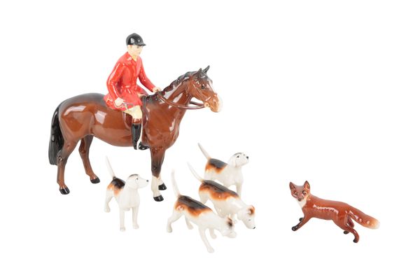 with marks to underside, the mounted rider in hunting pinks with four hounds and a fox (6)