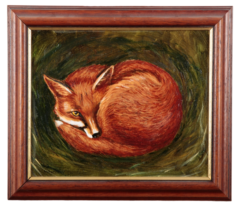 depicting a fox in a landscape, oil on canvas, 24cm x 29cm