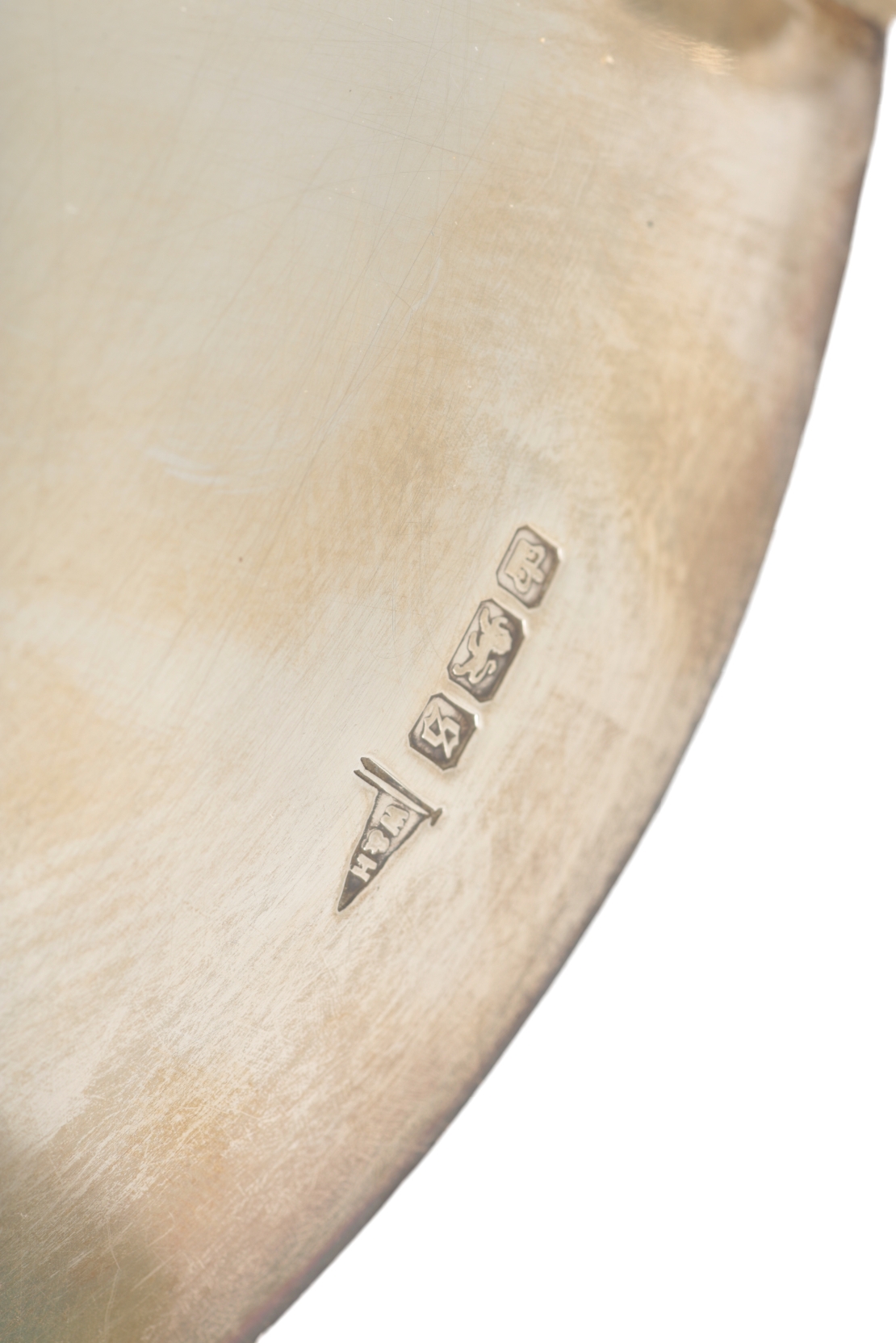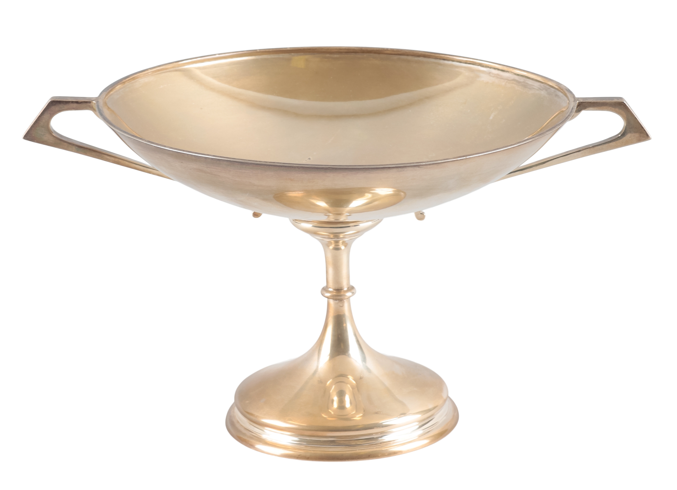 by Walker & Hall, Sheffield 1910, won by the Pigalle Prince at either Walthamstow or Lewisham tracks, the trophy with twin angular arms and shallow bowl, 13.5cm high, 13 tr. ozs