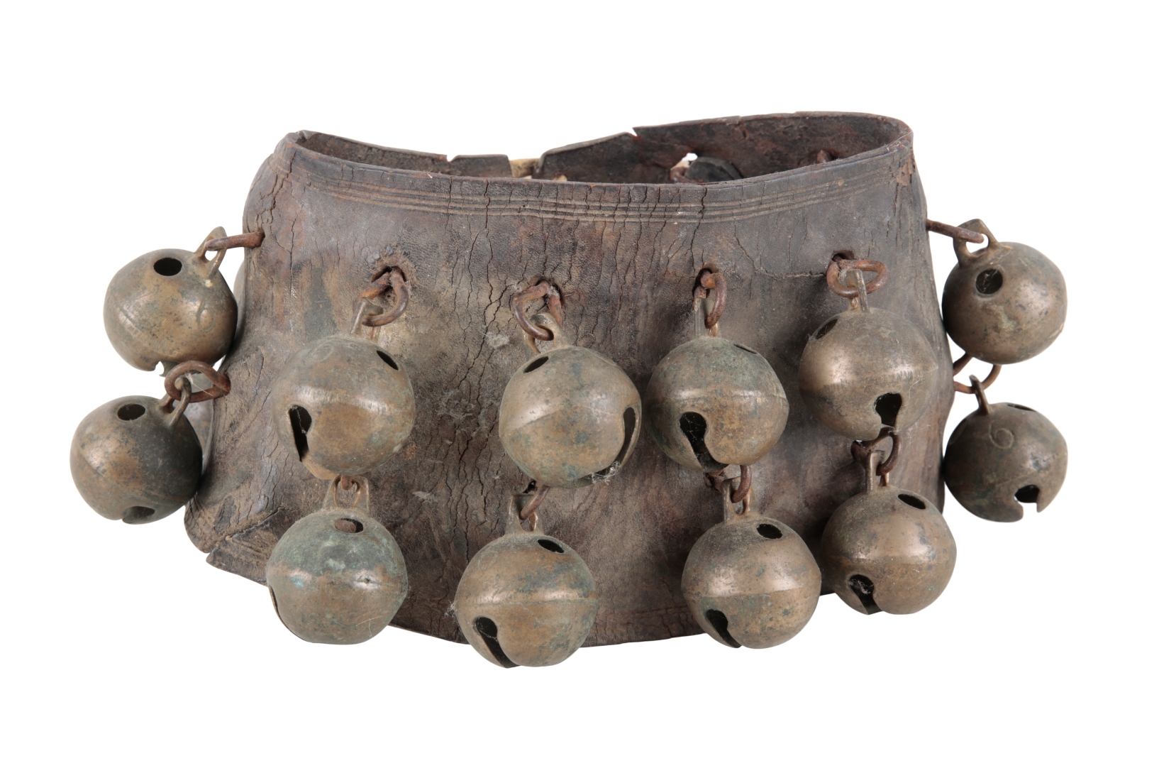 the large twenty-two bells suspended on metal hooks, 11cm high Provenance: A private Gloucester sporting collection.