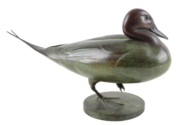 *GEOFFREY DASHWOOD (B. 1947) A bronze and green patinated pintail duck