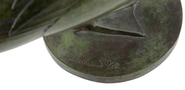 perched on one leg, on a circular bronze base, signed 'Dashwood no. 11/12', 25cm high x 42cm wide