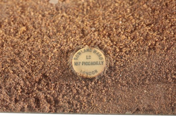 in a glazed display case set within a naturalistic setting, with Rowland Ward of London ivorine plaque, 38cm high x 43cm wide