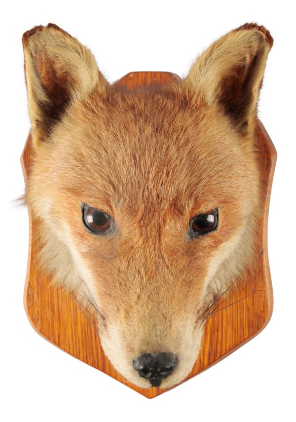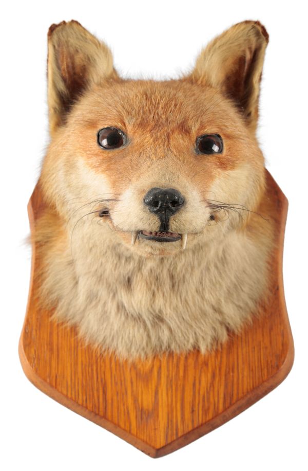 mounted on an oak shield, with paper label to the back 'F.E. Potter, Taxidermist', 28cm high