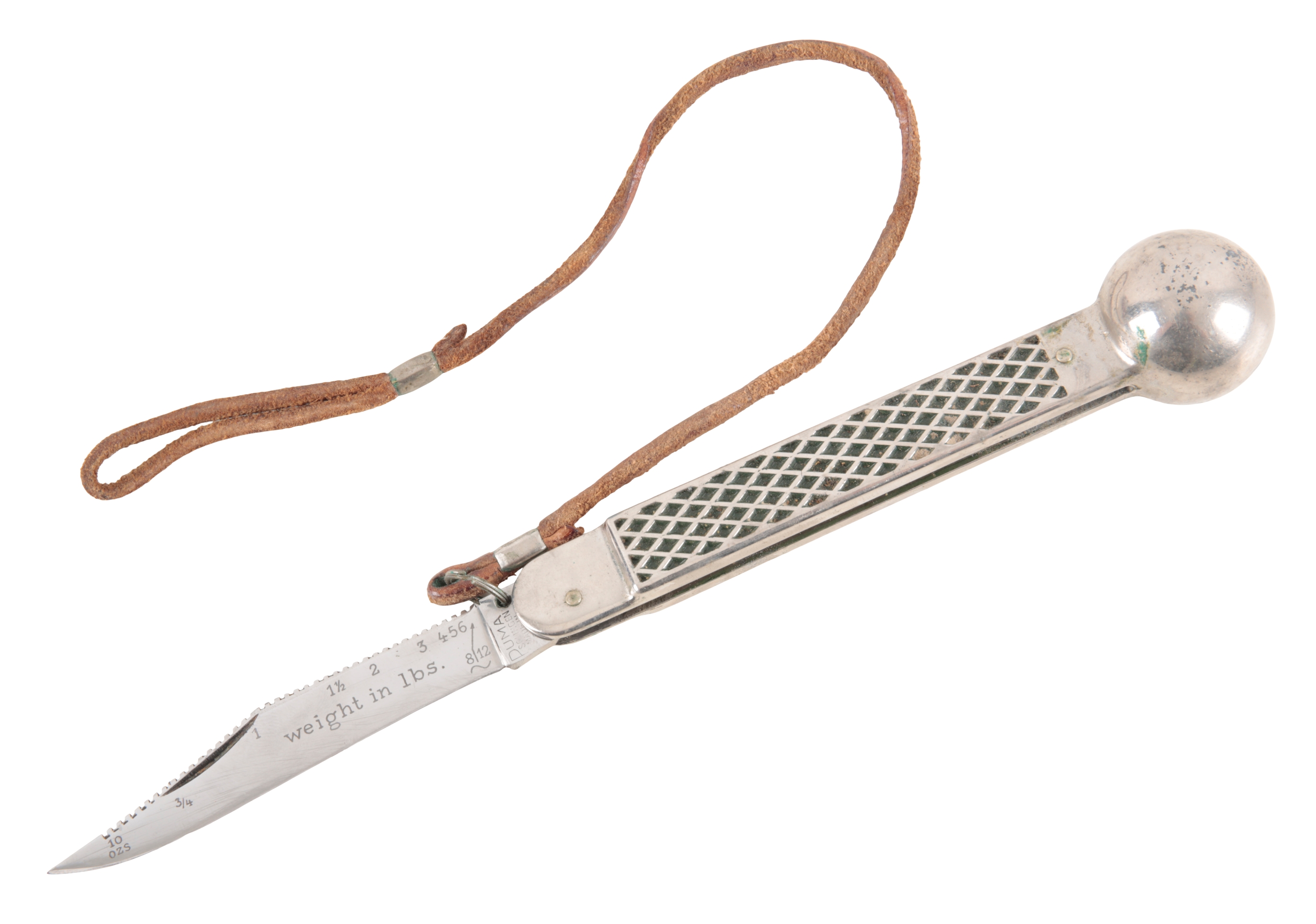 The anglers knife has some marks and scratches to the leather sheath. The knife is in good condition for age and ware.
