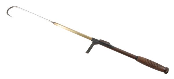 OGDEN SMITH: A BRASS TWO DRAWER FISHING GAFF