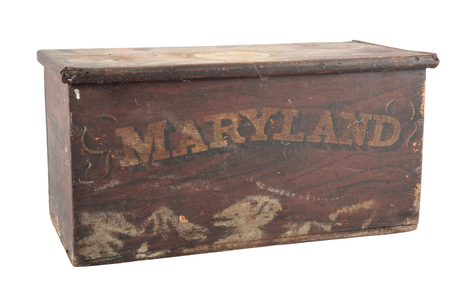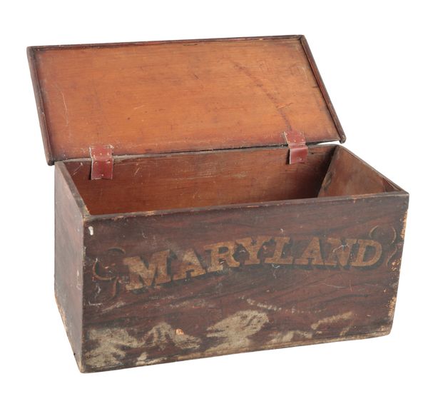 A GRAINED WOOD BOX INSCRIBED 'MARYLAND'