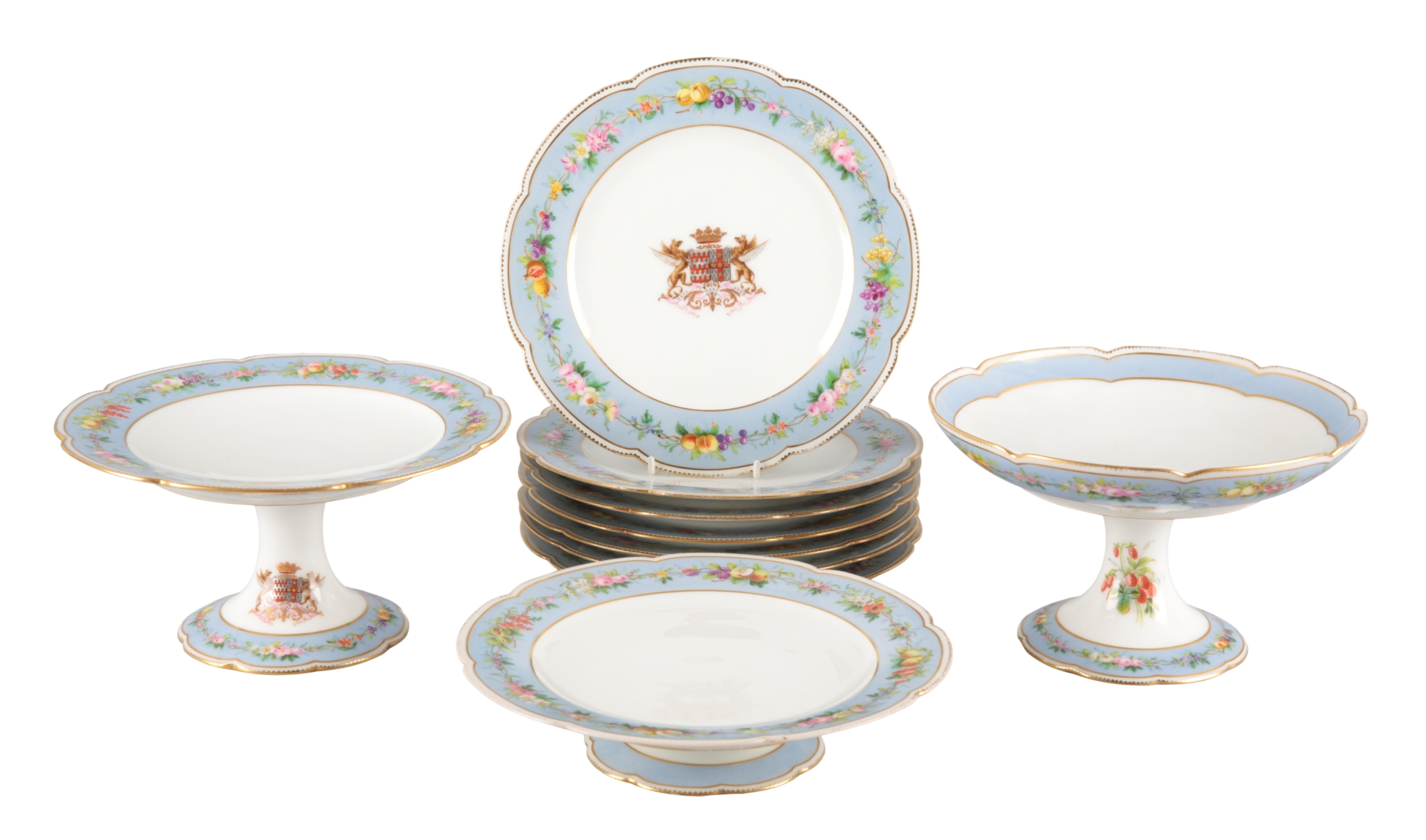 A PART PARIS PORCELAIN ARMORIAL DESSERT SERVICE