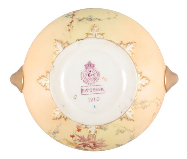A ROYAL WORCESTER BLUSH IVORY PORCELAIN VASE