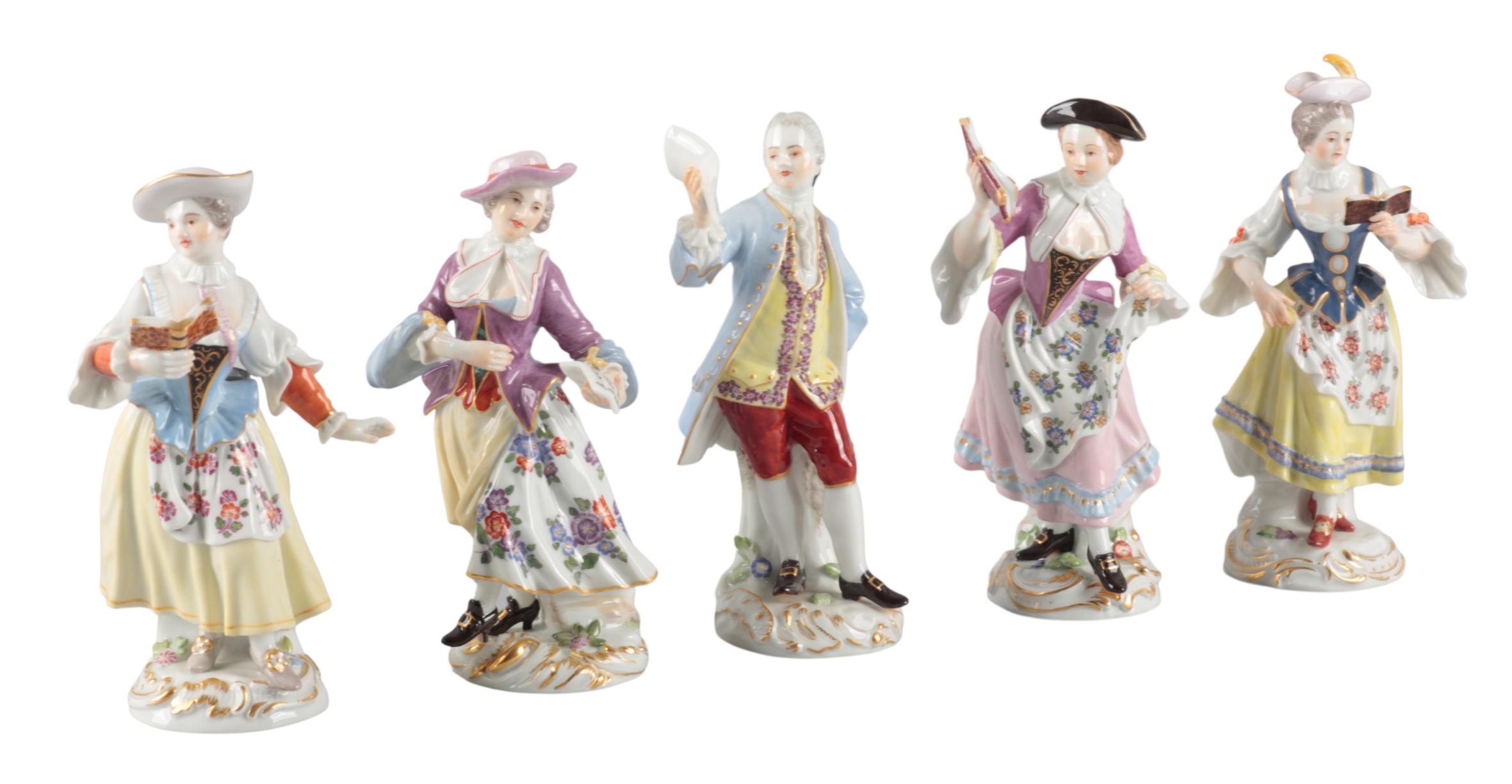 A GROUP OF FIVE MEISSEN PORCELAIN CHORAL FIGURES