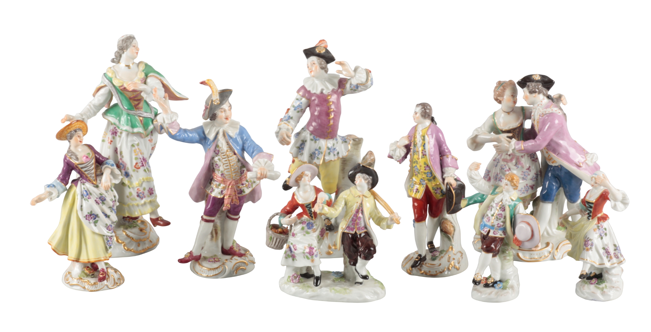 A GROUP OF NINE MEISSEN PORCELAIN FIGURES