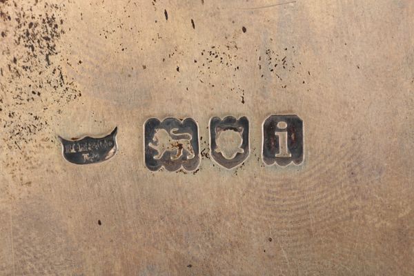 by Hawksworth, Eyre & Company, London 1904, with embossed scallop and shell border, on three shell decorated feet, 31cm diameter, 30 tr. ozs