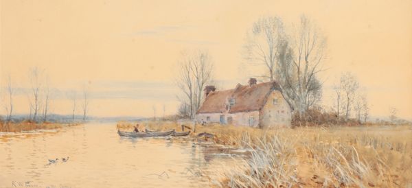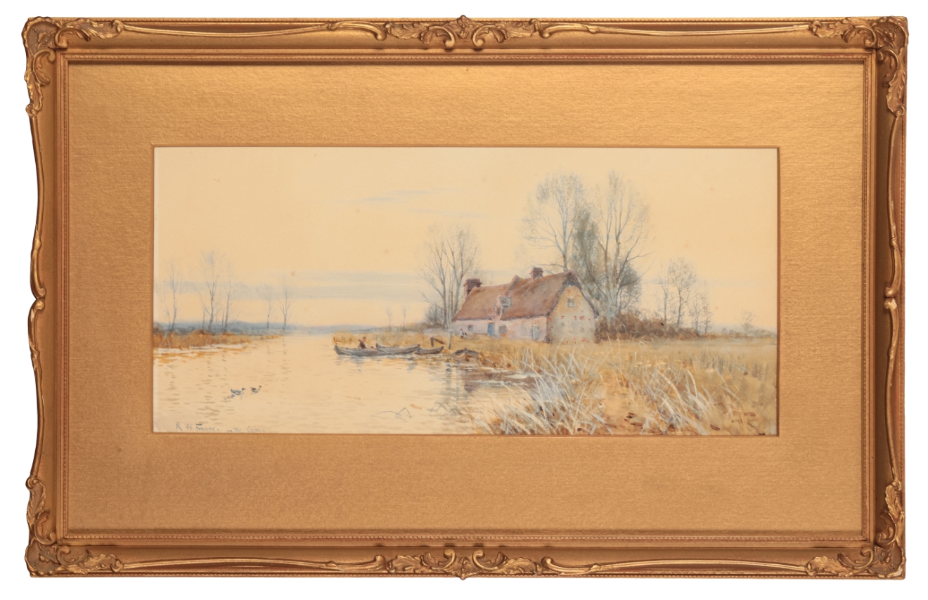 signed lower left, watercolour, 17.5cm x 37.5cm