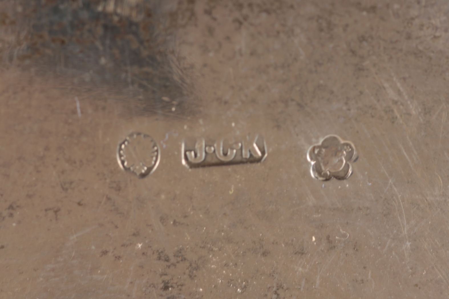 by Joseph Carl Klinkorch, (1843-1886), holder of the Imperial Warrant to Emperor Franz Joseph, 800 standard, with integral stand, 10cm high x 25cm wide x 25cm deep; together with a Viennese 800 standard ladle, 35cm long, 31 tr. ozs combined (2)