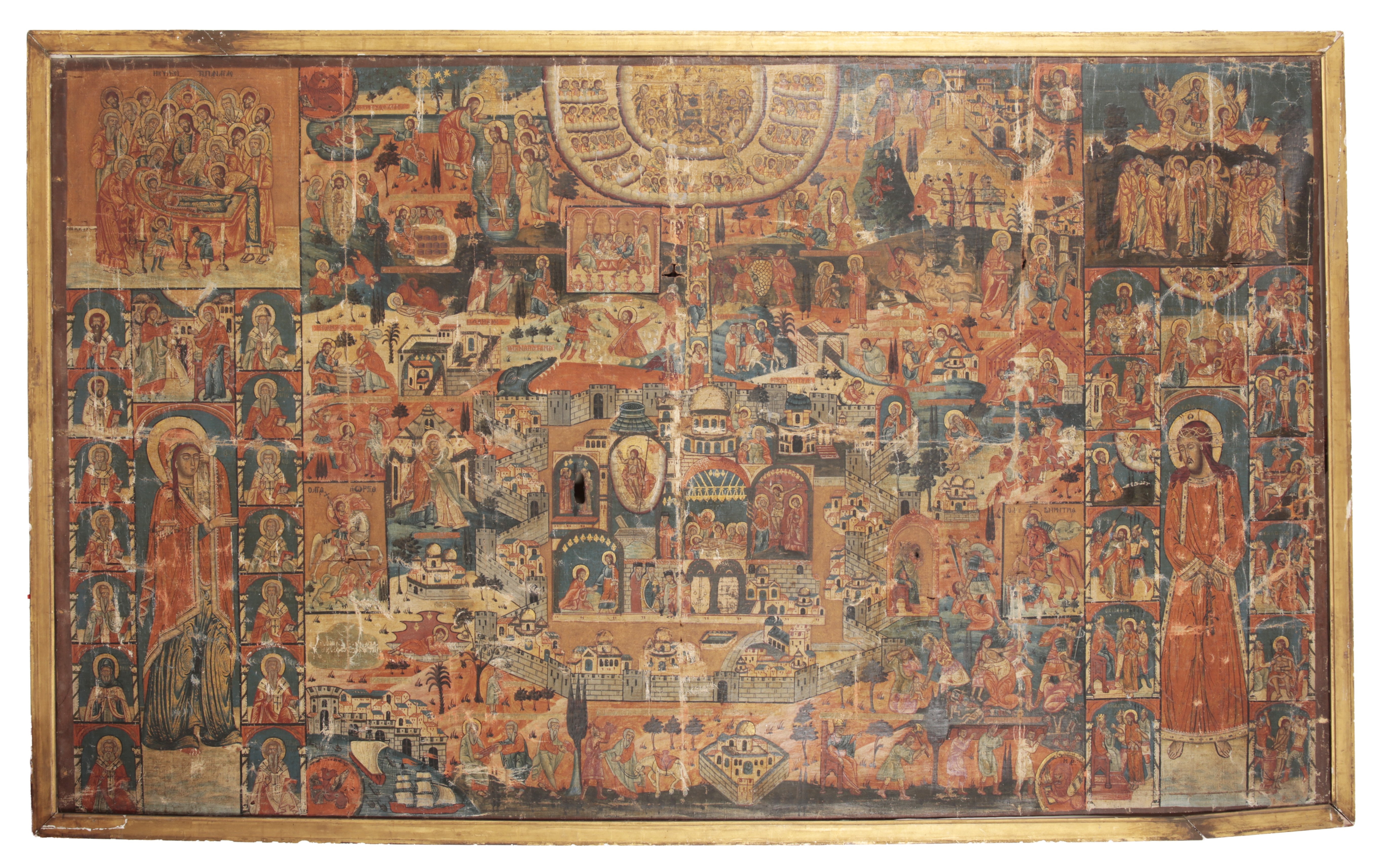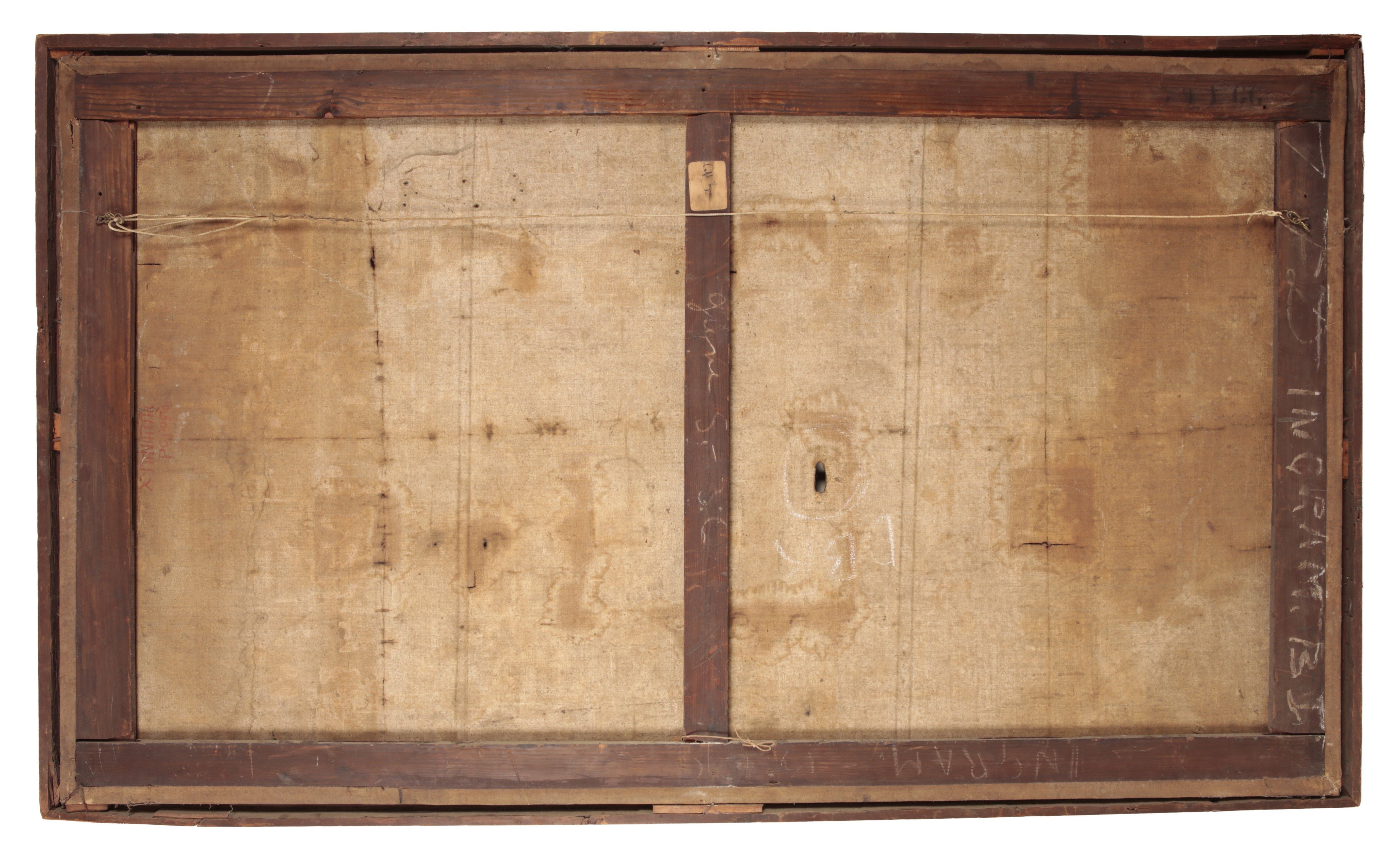 The artwork bears many signs of wear, including prominent, evenly spaced creases across the entirety of the picture surface. There are many areas of loss and fading, as well as multiple prominent holes. Please see additional images available on request.