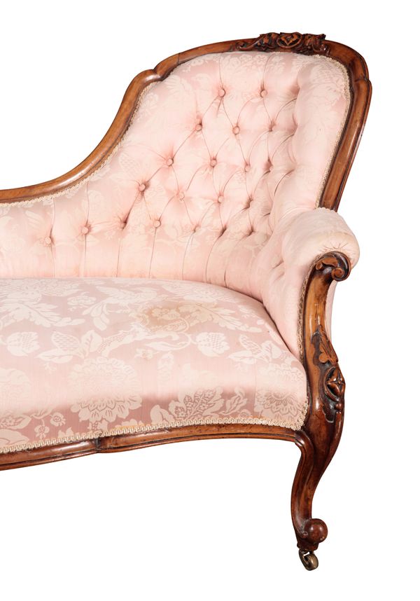 A VICTORIAN WALNUT CHAISE LONGUE IN ROCOCO STYLE