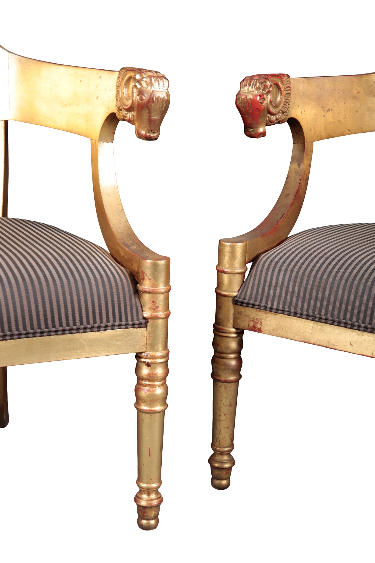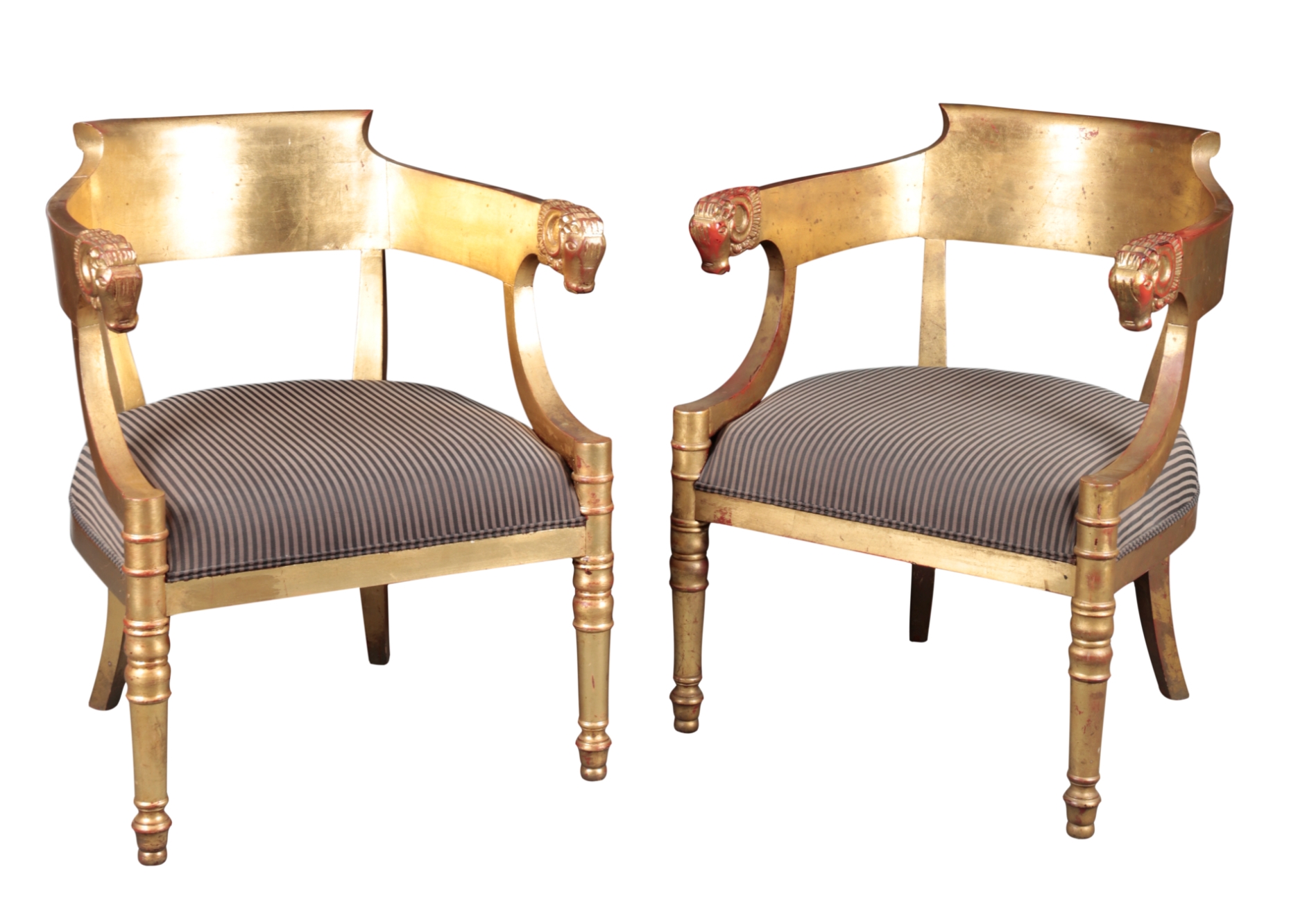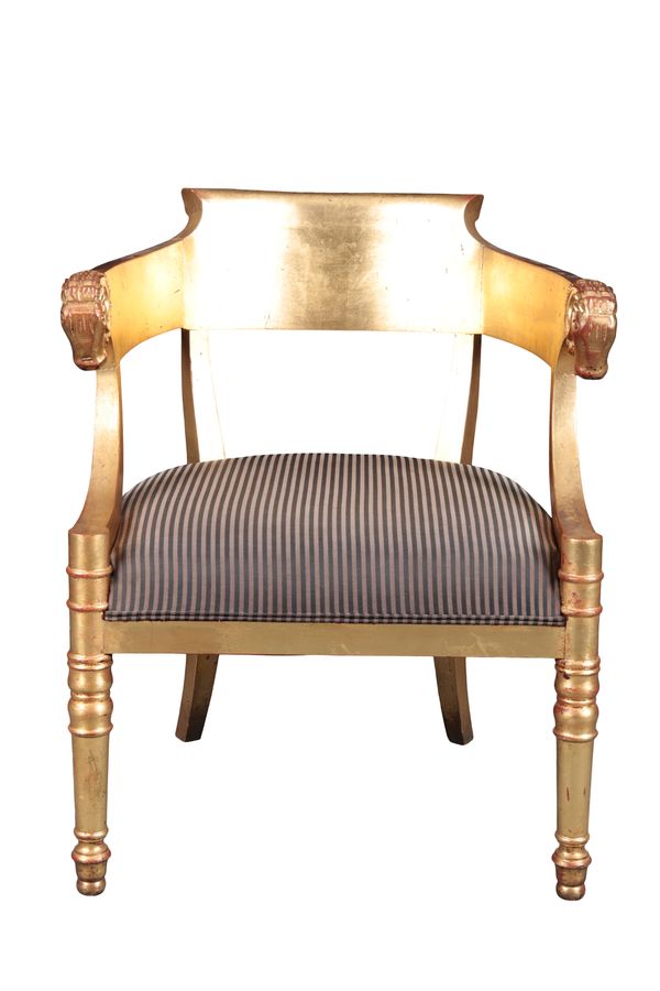 A PAIR OF EMPIRE STYLE GILTWOOD ARMCHAIRS IN THE MANNER OF JACOB FRERES