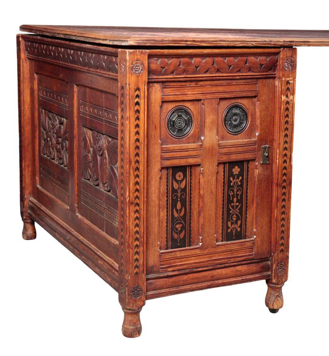 A LARGE ARTS AND CRAFTS PINE PARTNER'S DESK