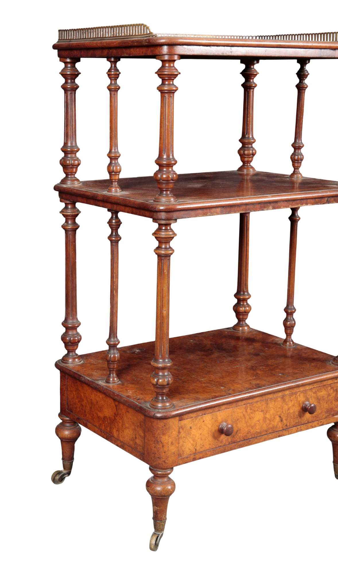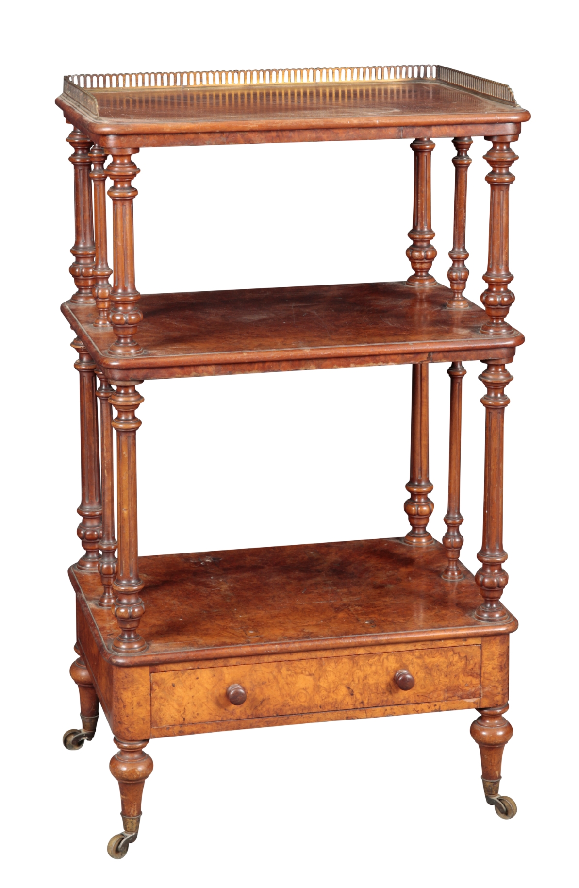 A VICTORIAN WALNUT WHATNOT ATTRIBUTED TO GILLOWS