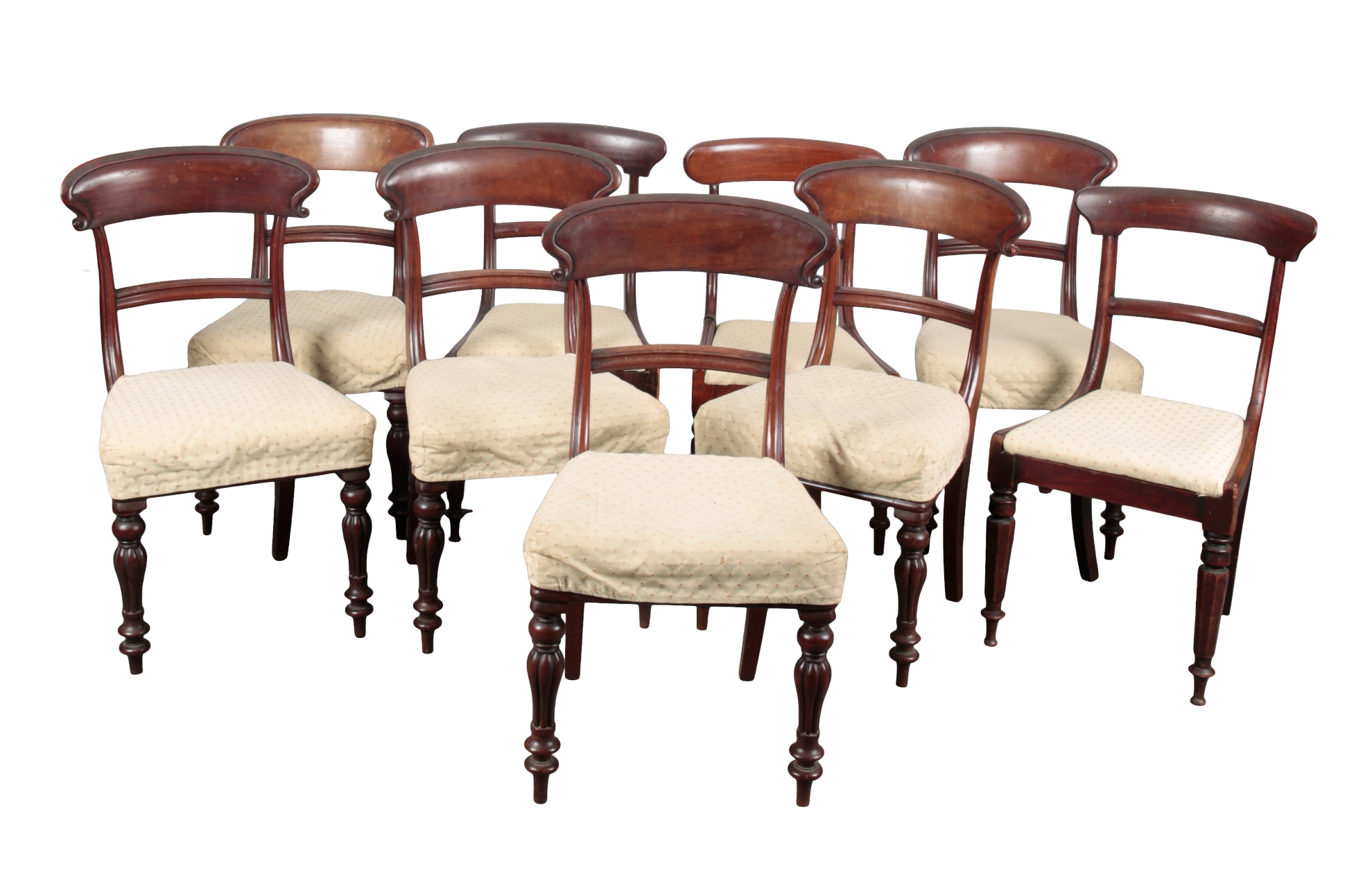 AN ASSOCIATED SET OF NINE VICTORIAN MAHOGANY DINING CHAIRS
