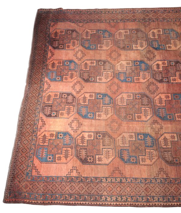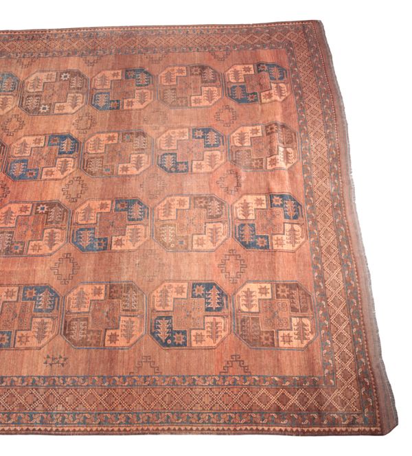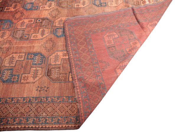 late 19th/early 20th century, the brick red ground decorated with repeating elephant's foot ghuls, 460cm x 308cm