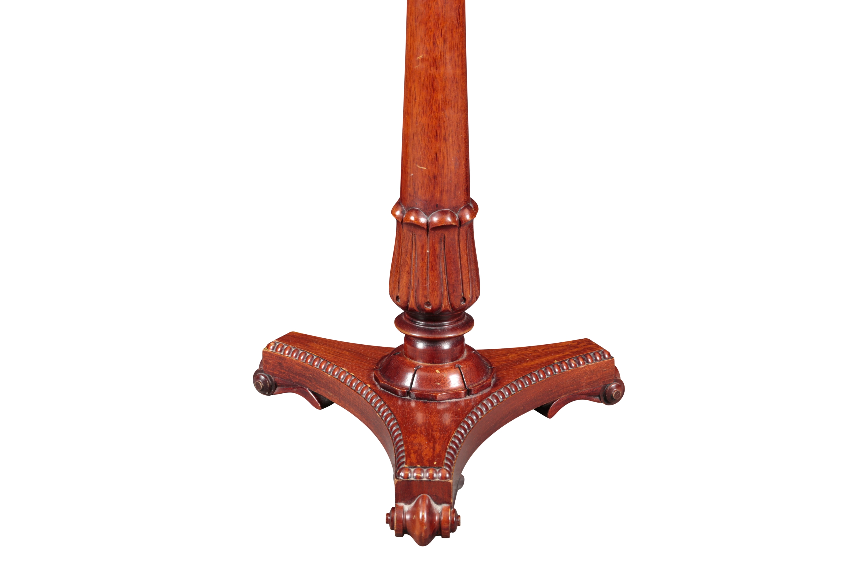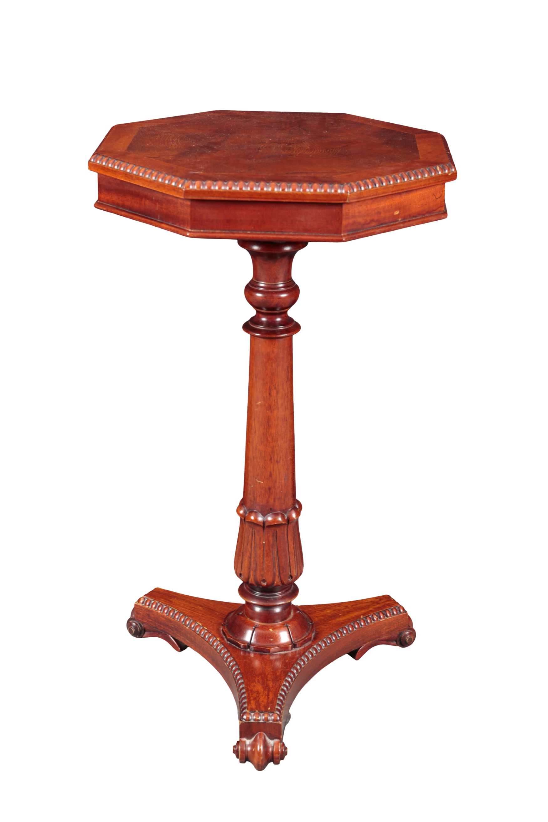 20th century, the octagonal top on a turned stem and tripod base with scroll feet, 71cm high x 41cm wide