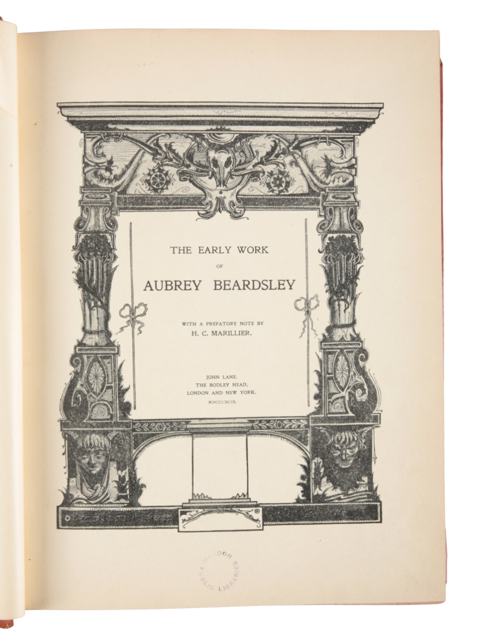with a prefatory note by H.T. Marillier, published by John Lane at The Bodley Head, London 1899, half maroon leather bound with gilt tooled spine and red cloth boards, ex libris Hendon Libraries; together with Wilson, Simon: 'Beardsley', published by Phaidon 1983, hard bound with dust wrapper (2)