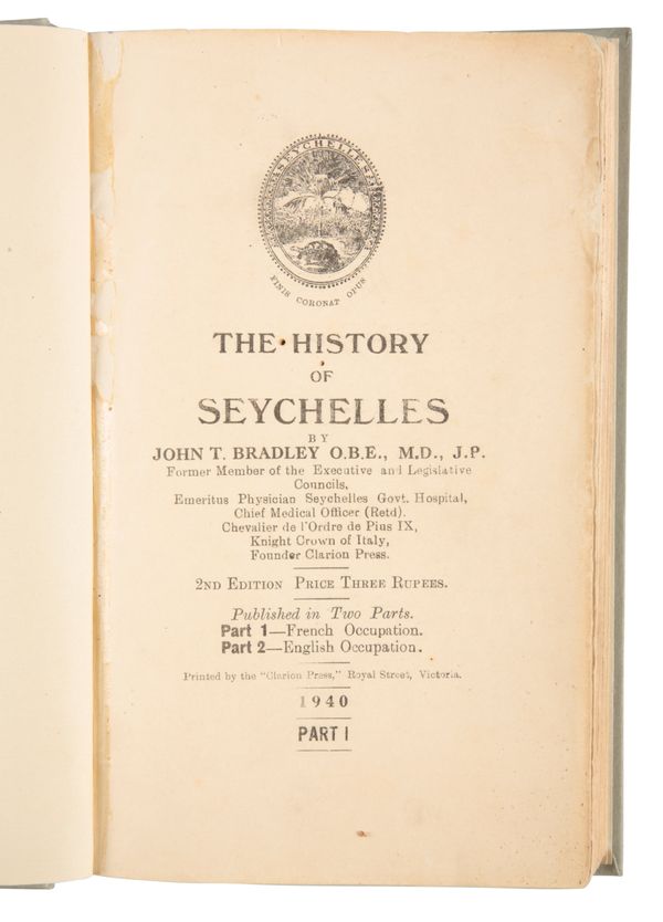 BRADLEY, JOHN: ‘THE HISTORY OF THE SEYCHELLES’