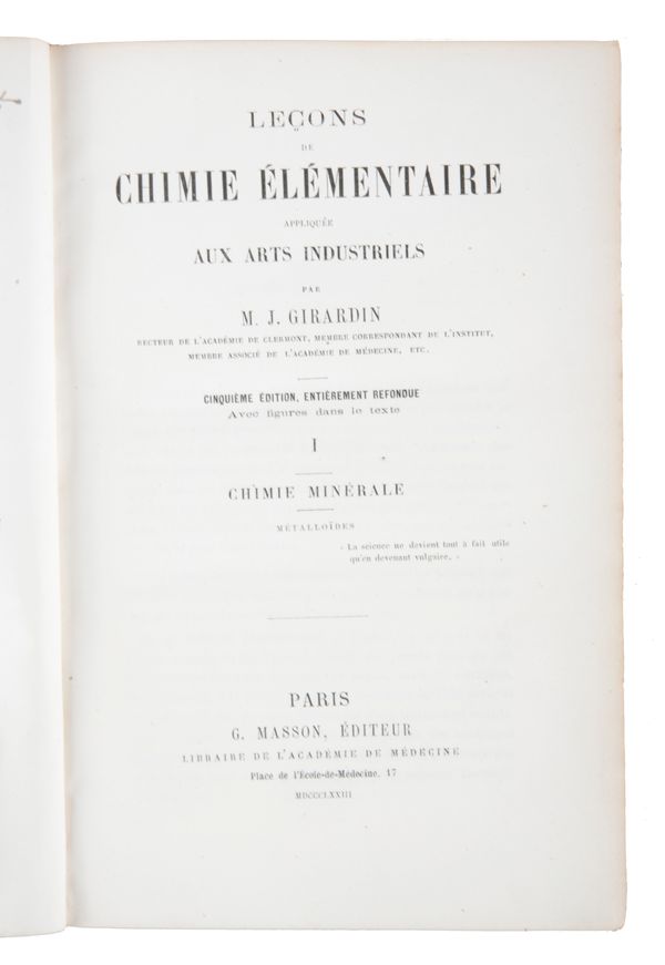 fifth edition, volumes 1-5, published by Masson, Paris, 1873, gilt tooled green leather bound (5) Provenance: A Dorset bibliophile.