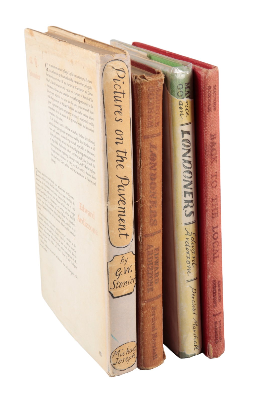 comprising ‘Back to the Local’, first edition and ‘Londoners’ two first edition copies, all published by Percival Marshall, London 1949 and 1951 respectively, one with dustwrapper; together with Stonier, G.W.: ‘Pictures on the Pavement’, illustrated by Edward Ardizzone, first edition, published by Michael Joseph, 1955, with dustwrapper (4)