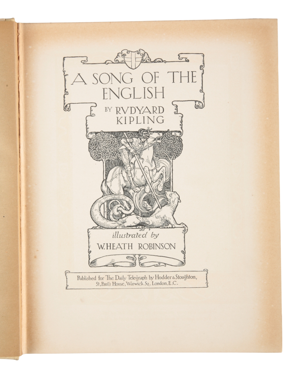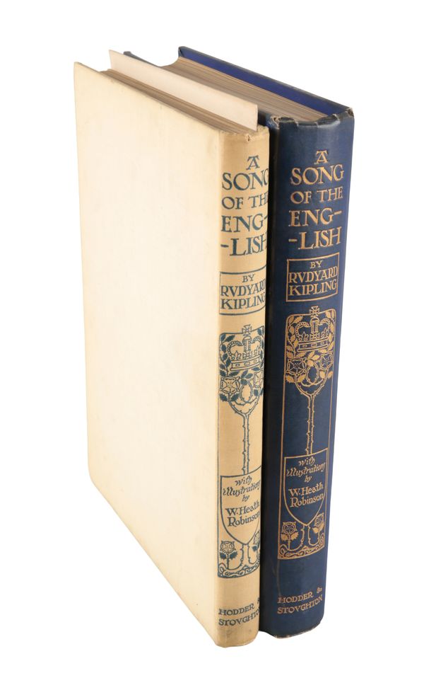 two copies, illustrated by William Heath Robinson, both published by Hodder and Stoughton, one in pale yellow cloth binding published on behalf of 'The Daily Telegraph' National Bands Fund and retaining a printed pamphlet entitled 'National Bands. A Speech by Rudyard Kipling delivered at the Mansion House on January 27th 1915', the other in blue cloth binding and retaining printed proclamation by George V (2)