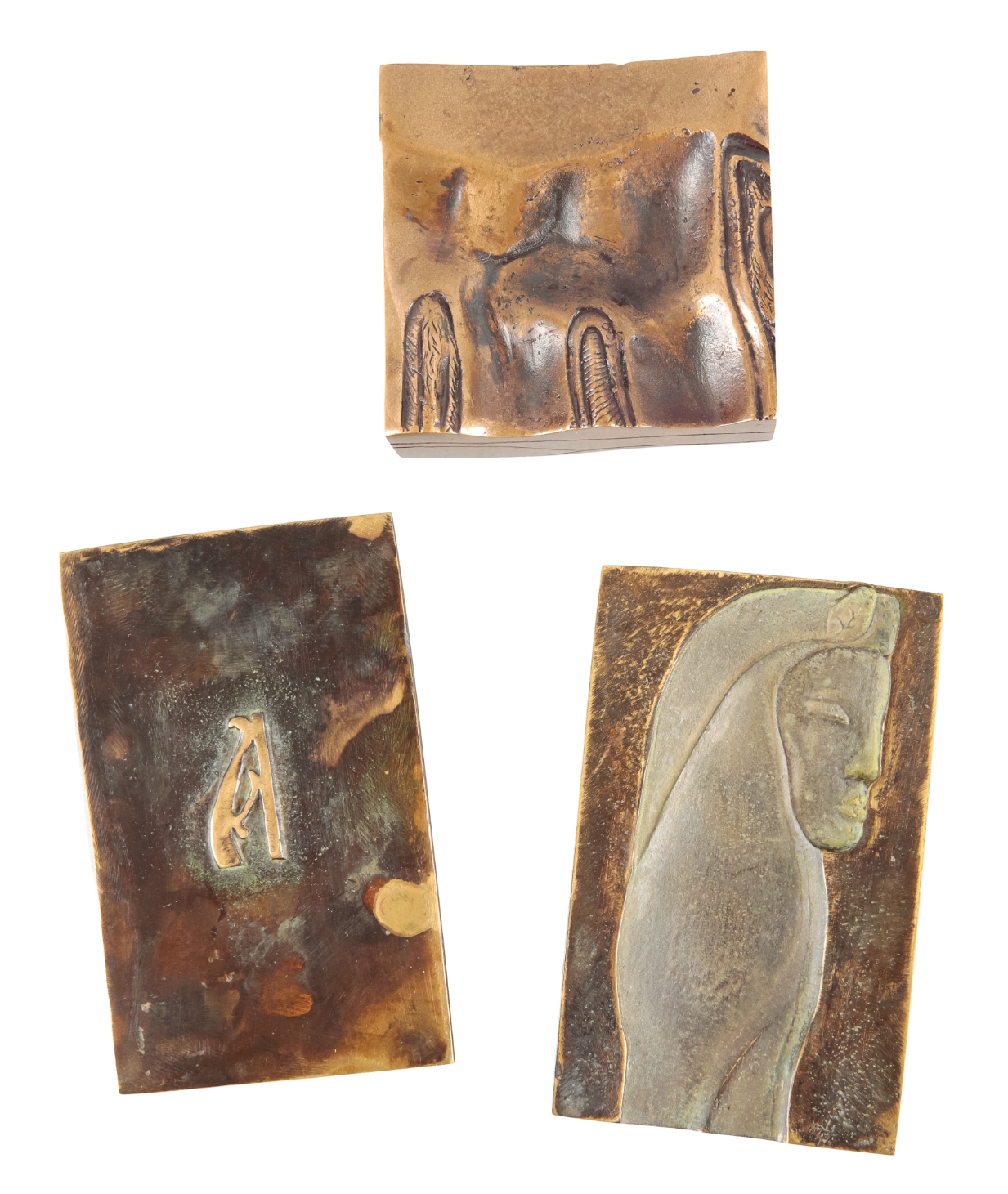 one by Kate Timewell 'Body Map', 3cm high x 6cm square, the other by Angelina Tzvetkova 'Crater: Portrait', cast in two parts, 9cm high x 5.5cm wide (2)