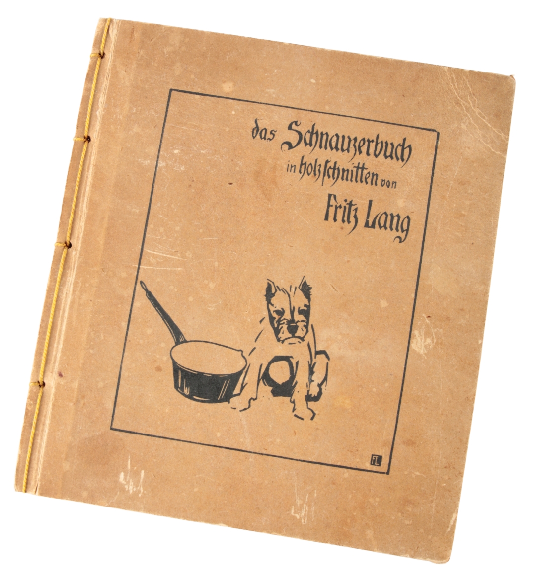 a card bound volume of nine woodblock prints, each depicting Schauzers at play, each signed in pencil 'F Lang', the volume 27cm x 24cm