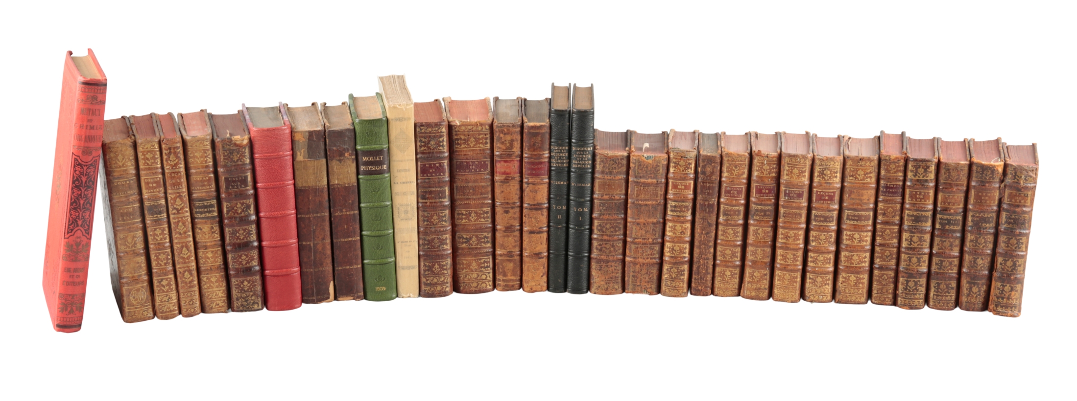 seventh edition, volumes 1-6, published by Chez Durand et al, Paris 1771; together with Nollet, Abbe: ‘Lettres Sur Electricite’, published by Geurin et al, Paris 1753; and a quantity of antiquarian French scientific books, some retaining plates, others without (33)