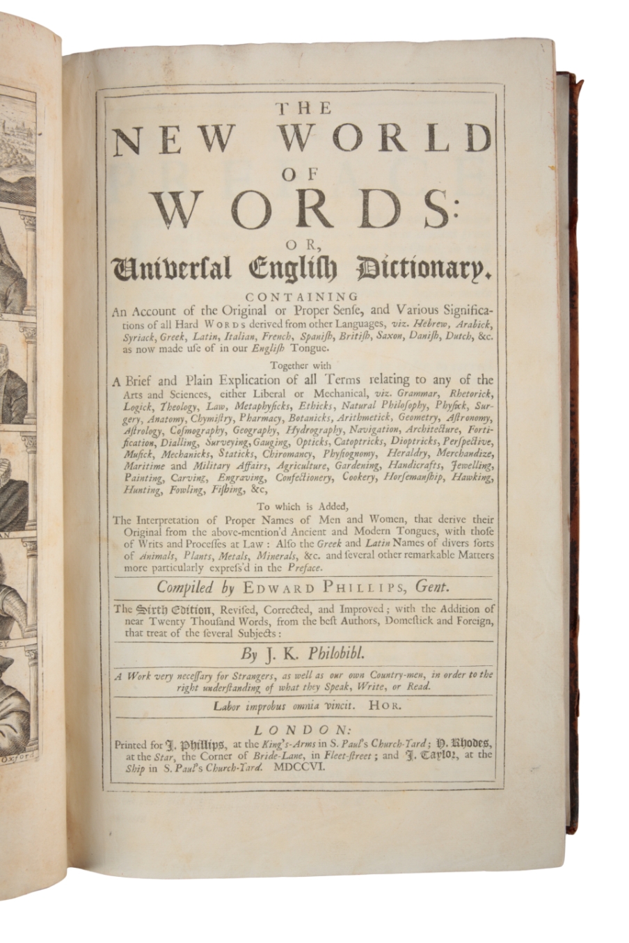 PHILLIPS, EDWARD: ‘THE NEW WORLD OF WORDS: OR THE UNIVERSAL ENGLISH DICTIONARY’