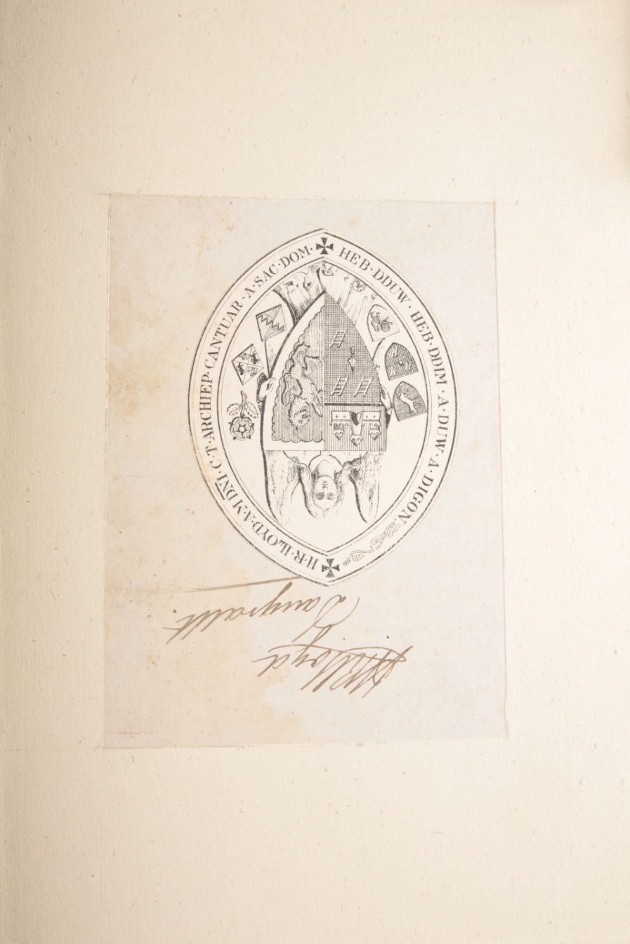 published for the author by Longman, Rees, et al, London 1830, later three quarter brown calf bound with marbled boards and black leather half title, inside from board pasted with Archbishop of Canterbury bookplate