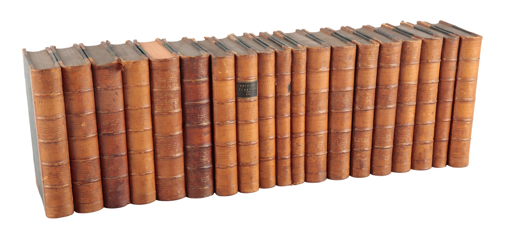 volumes 1-11, 13-16, 18, 22, 23 and 24, all three-quarter brown leather bound with marbled cloth boards, volume 16 retaining one half title (19)