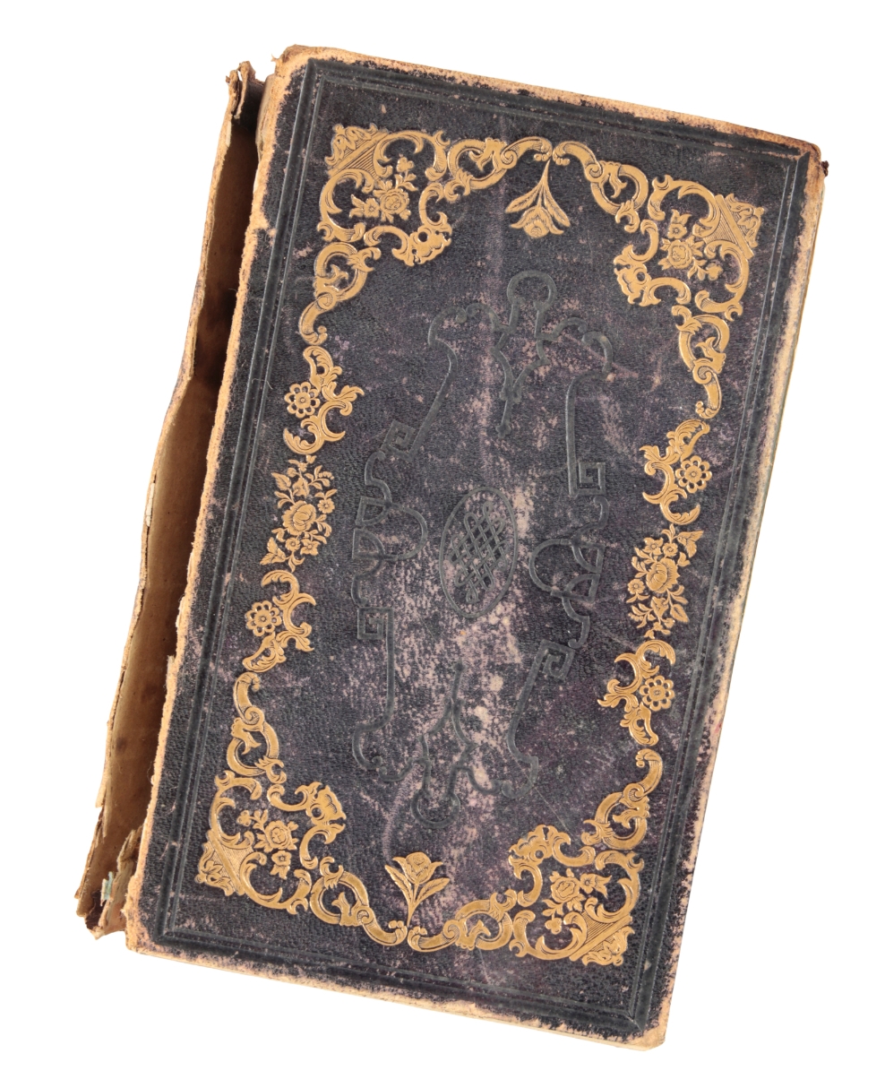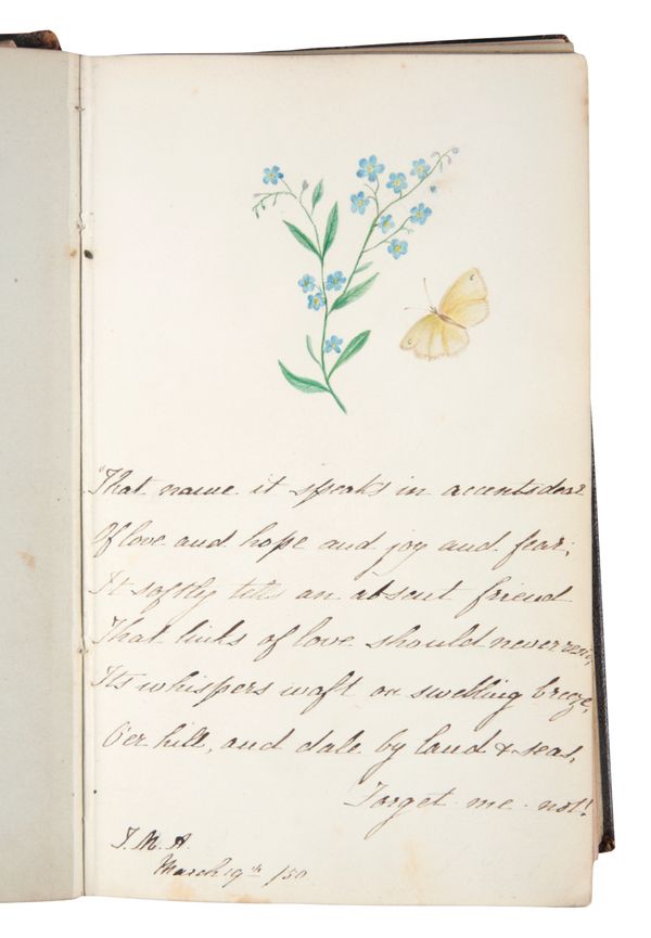 containing a selection of pressed and dried botanical specimens, sketches and verse, the front fly leaf dated ‘49 (1849), the volume with gilt tooled leather binding