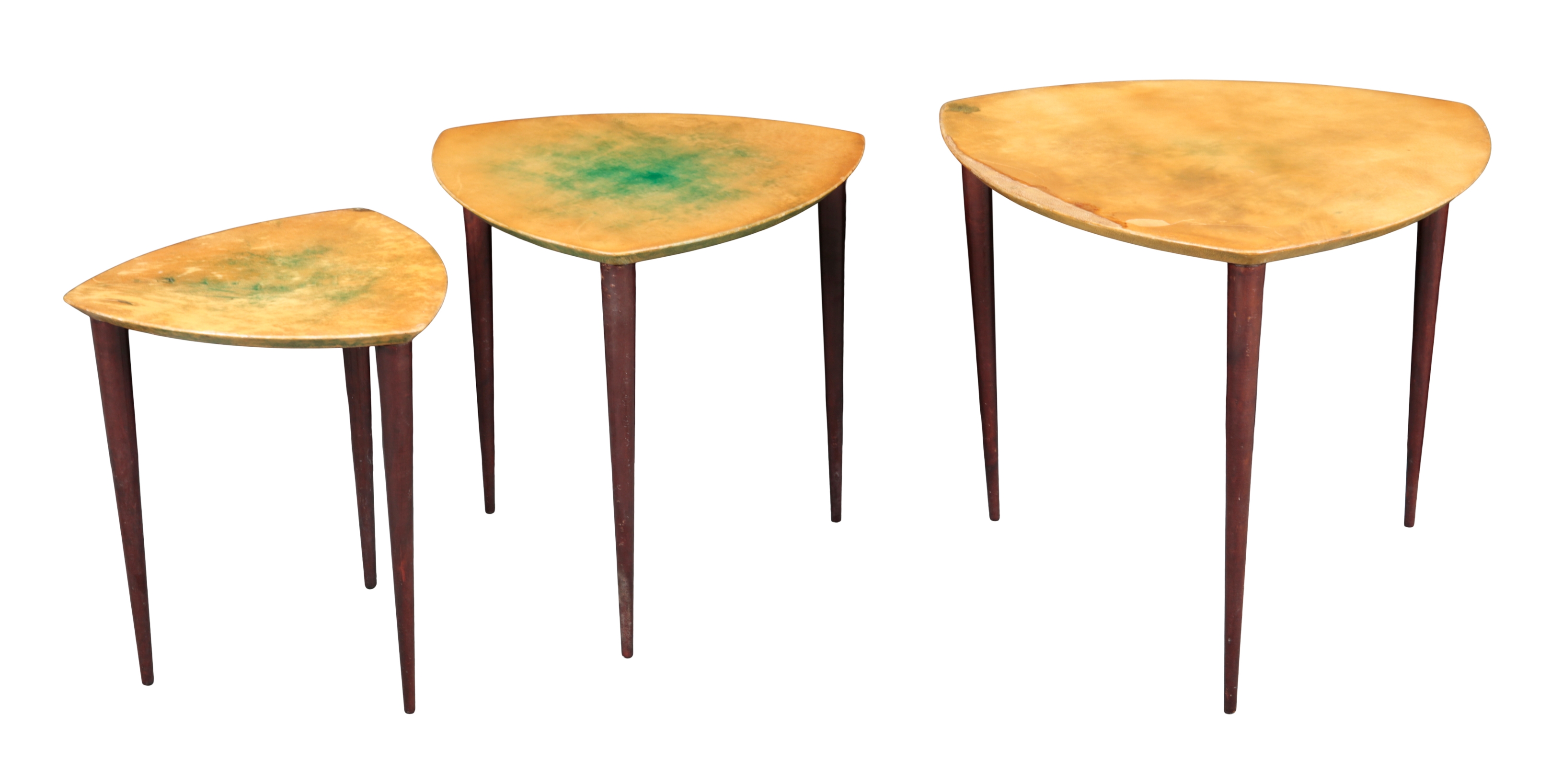 It has surface scratches to the legs and tops and minor fritting to the edges of the tables.