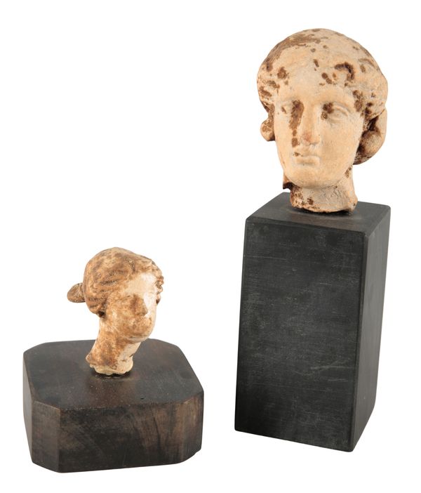 Both heads are marked, dirty and have small chips/fritting. The larger has a hole in.