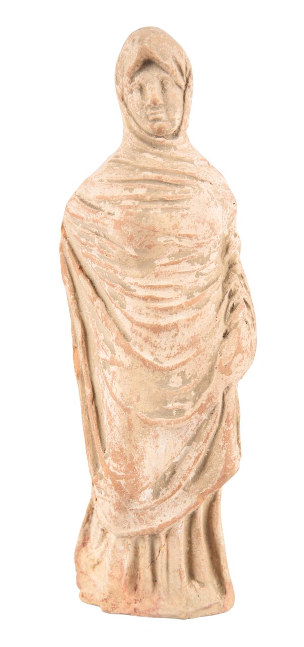 The full figure appears largely ok. Some evidence of old cracks and perhaps restorations around the base. Some small chips and areas od surface wear consistent with age and use.