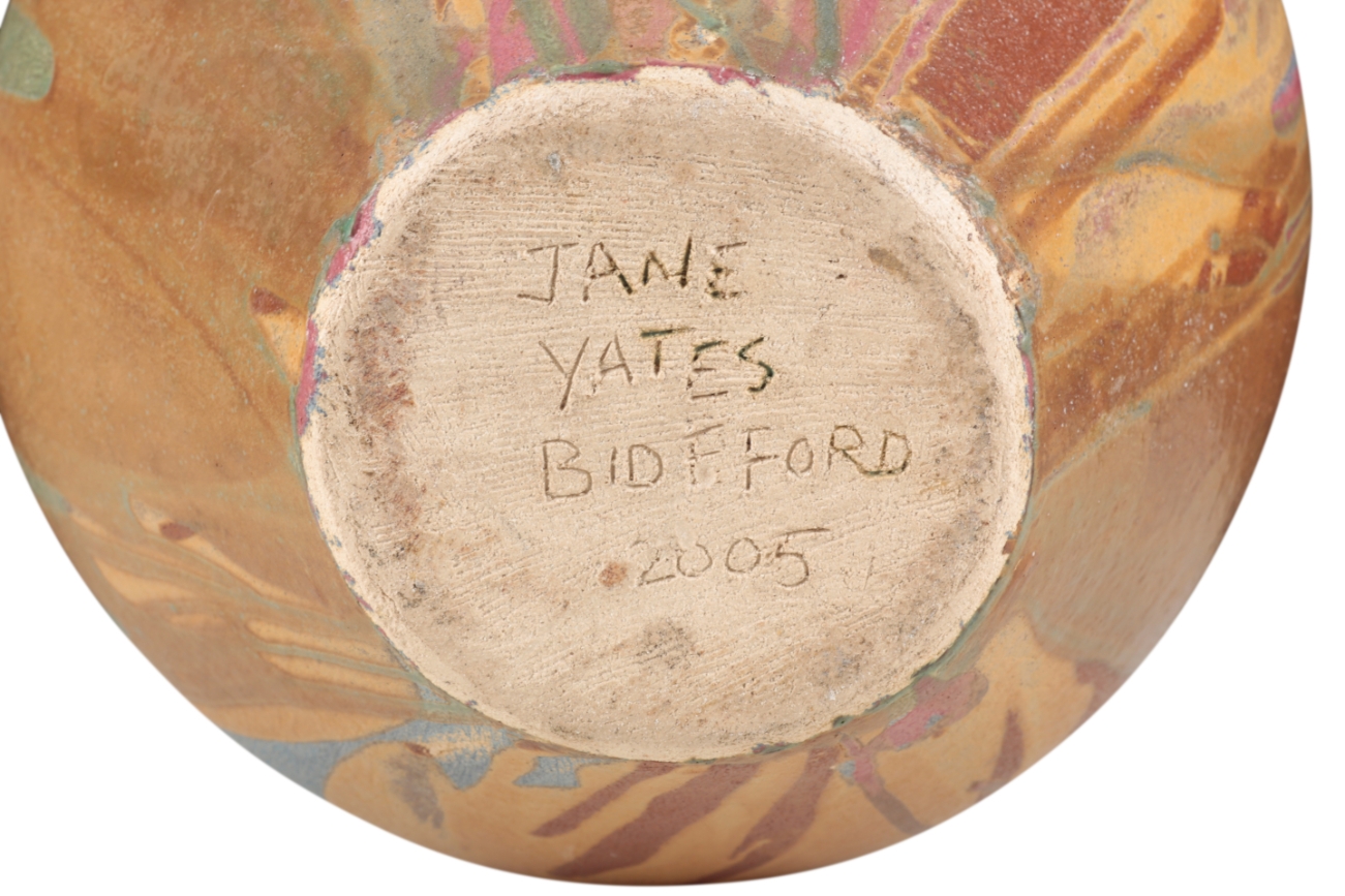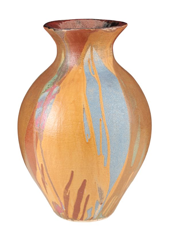 *JANE YATES (20TH CENTURY), BIDEFORD, DEVON, STUDIO POTTERY A large baluster vase with striated decoration